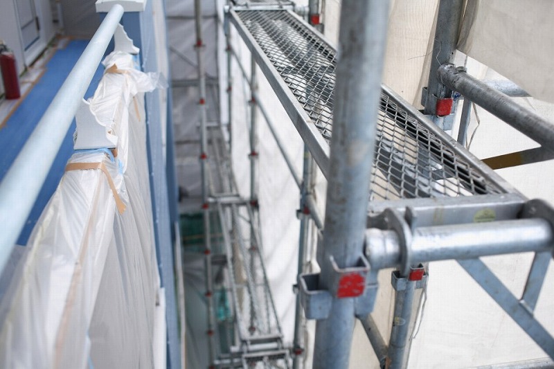 建物周りに足場を組み立てる作業を足場工事といいます。